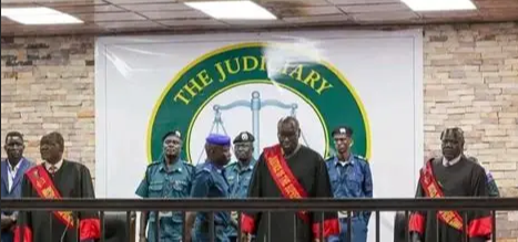 The court consists of a panel of three judges: James Alala (presiding judge), Stephen Simon Isaac, and Pur Majok.