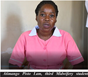 Atimango Pisto Lam, third Midwifery student and intern during an exclusive interview with No. 1 Citizen Daily English Newspaper at Torit Teaching Hospital /photo by: Lodu William Odiya/photo: Lodu William Odiya