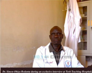 Dr. Simon Ohiya Redantu during an exclusive interview at Torit Teaching Hospital/photo by Lodu William Odiya
